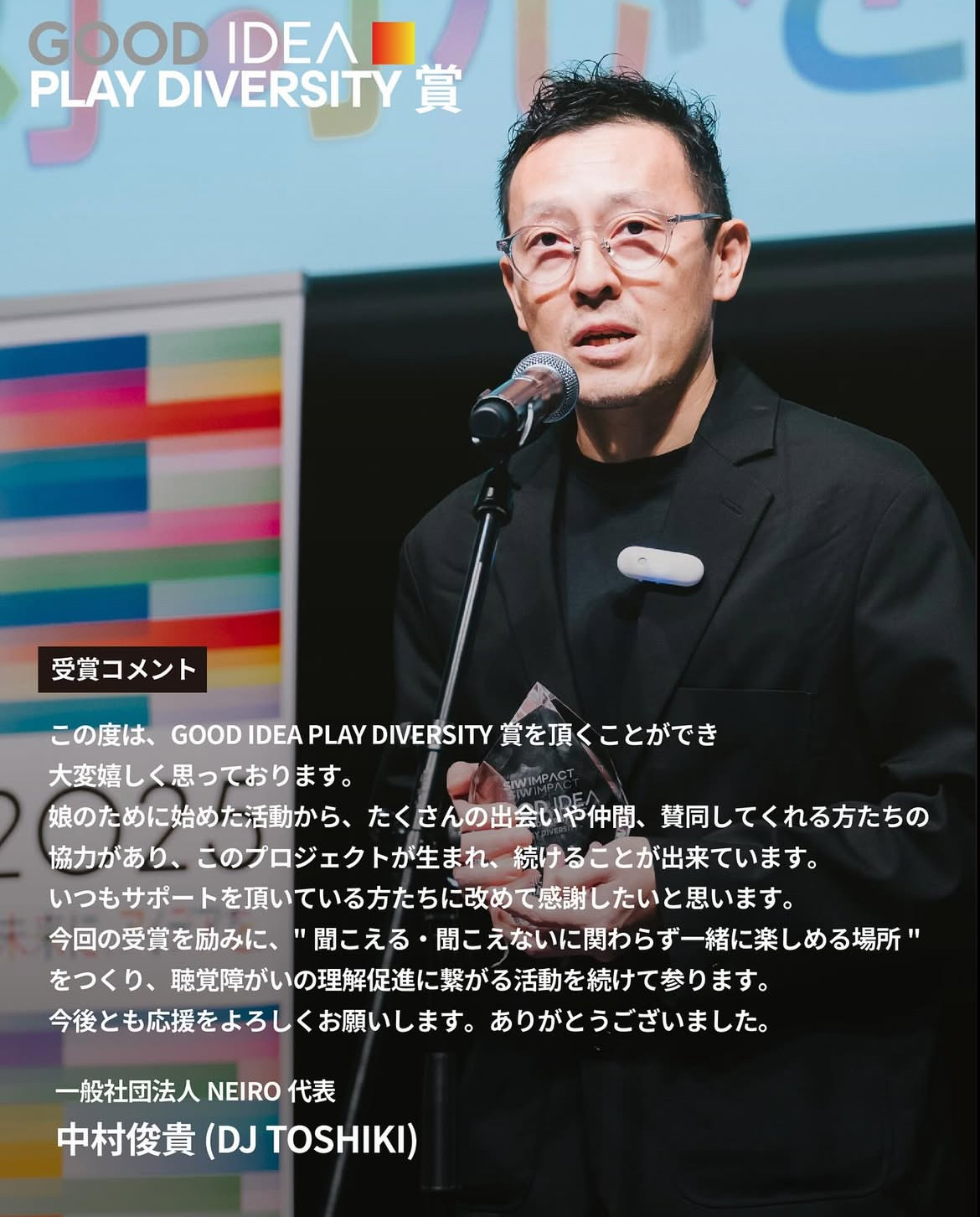 この度は、GOOD IDEA PLAY DIVERSITY賞を頂くことができ大変嬉しく思っております。