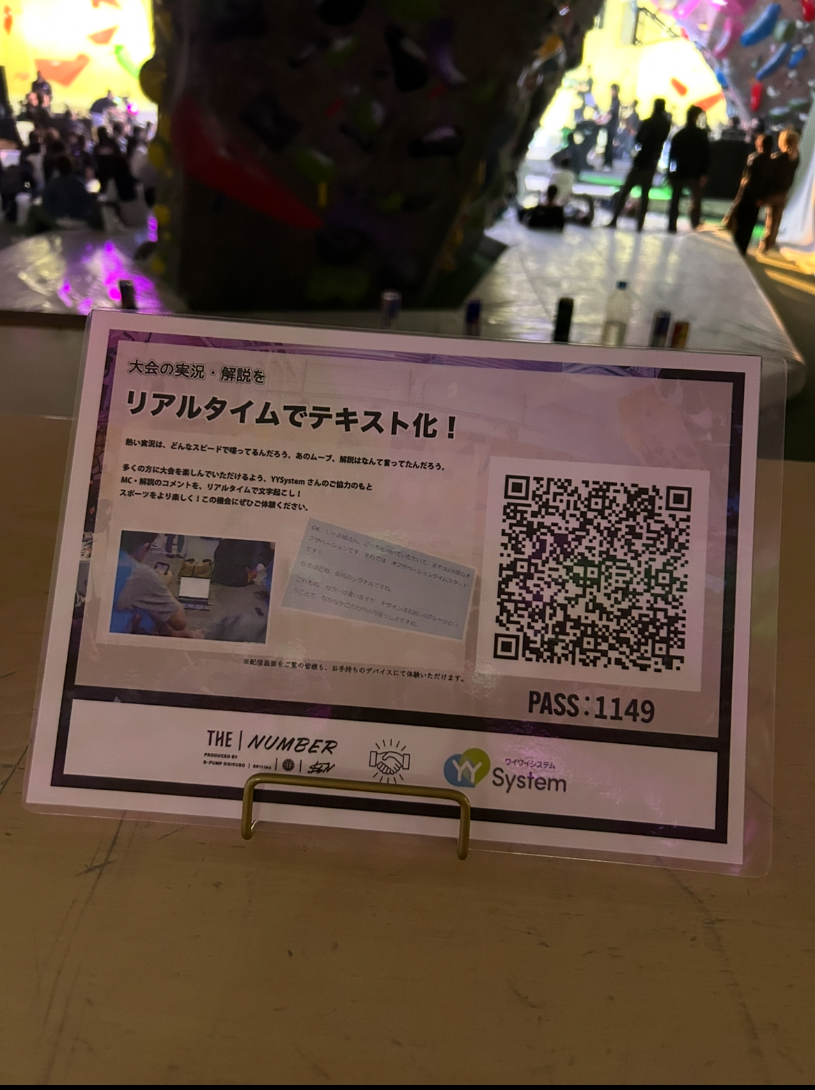 様々なボルダリングの大会を開催している”THE | NUMBER” シリーズでは、デフ(聞こえない)クライマーが参加する大会も開催しており、弊団体の活動目的をご理解いただきプロジェクトを毎回実施させていただいています。