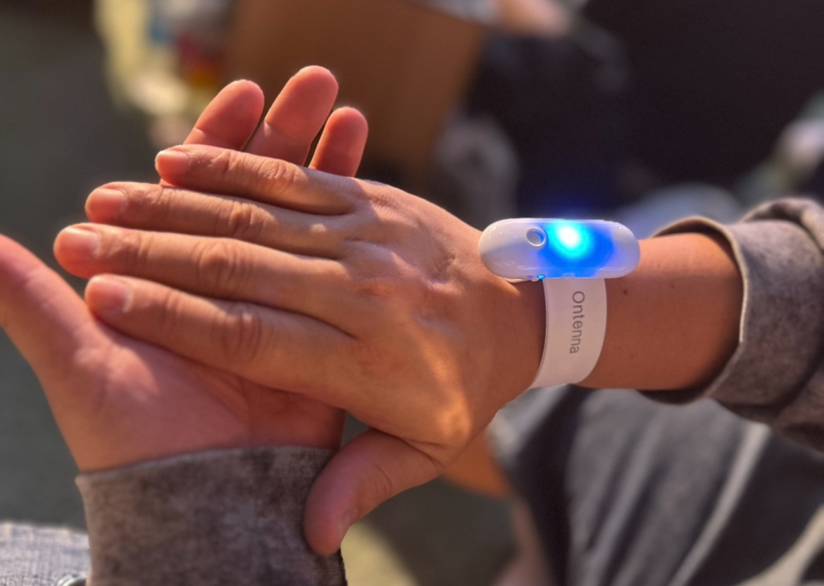 音を光と振動に変換するデバイス “Ontenna オンテナ” を使用し、会場で流れる音楽のリズムを視覚と触覚で表現します。